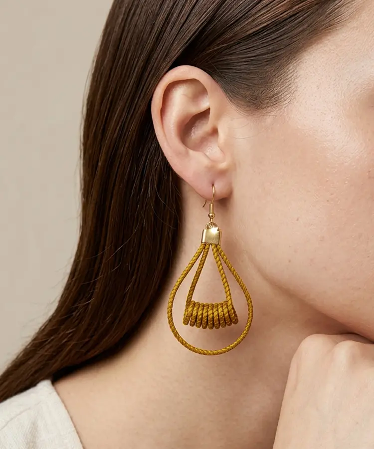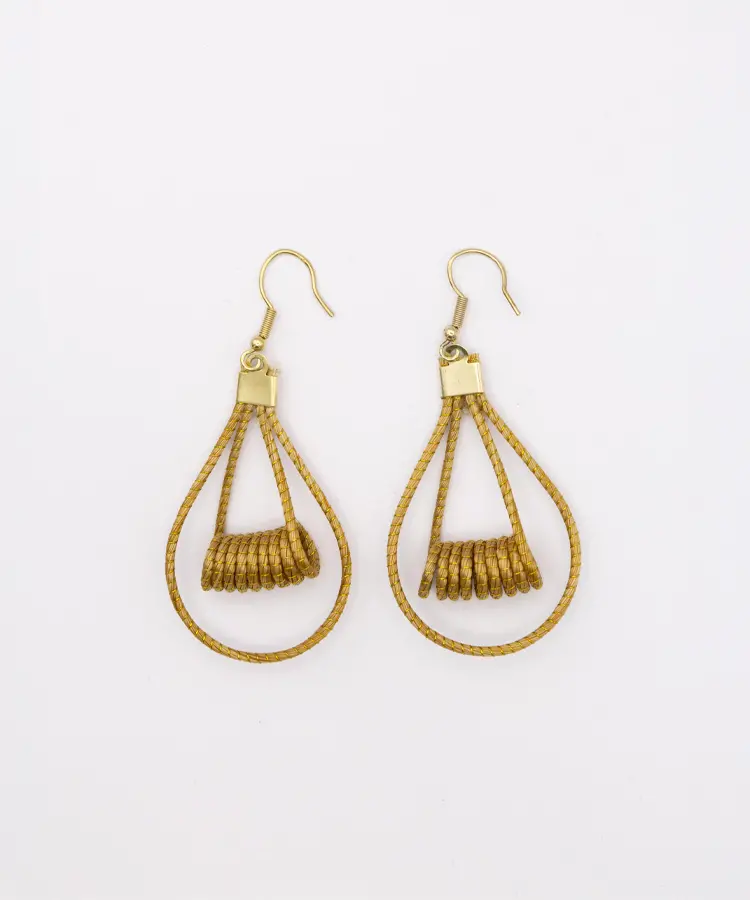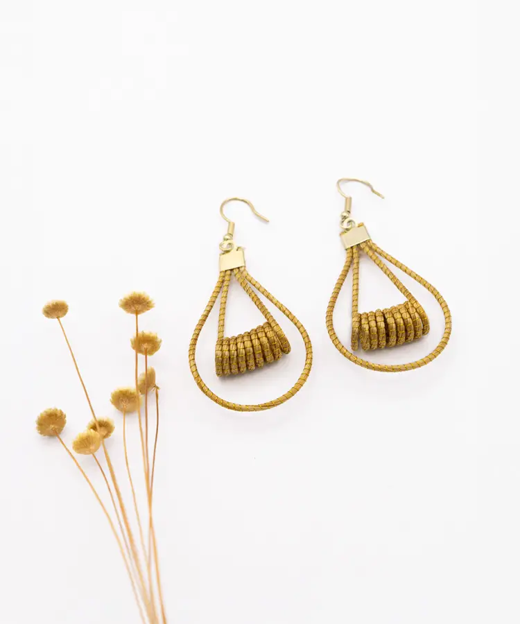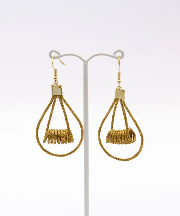 Pendientes en Capim Dourado (oro vegetal) de líneas orgánicas. Ligeros, luminosos y con una elegancia muy natural.