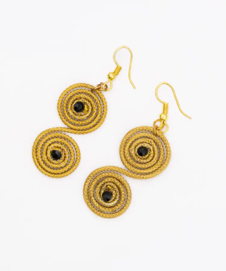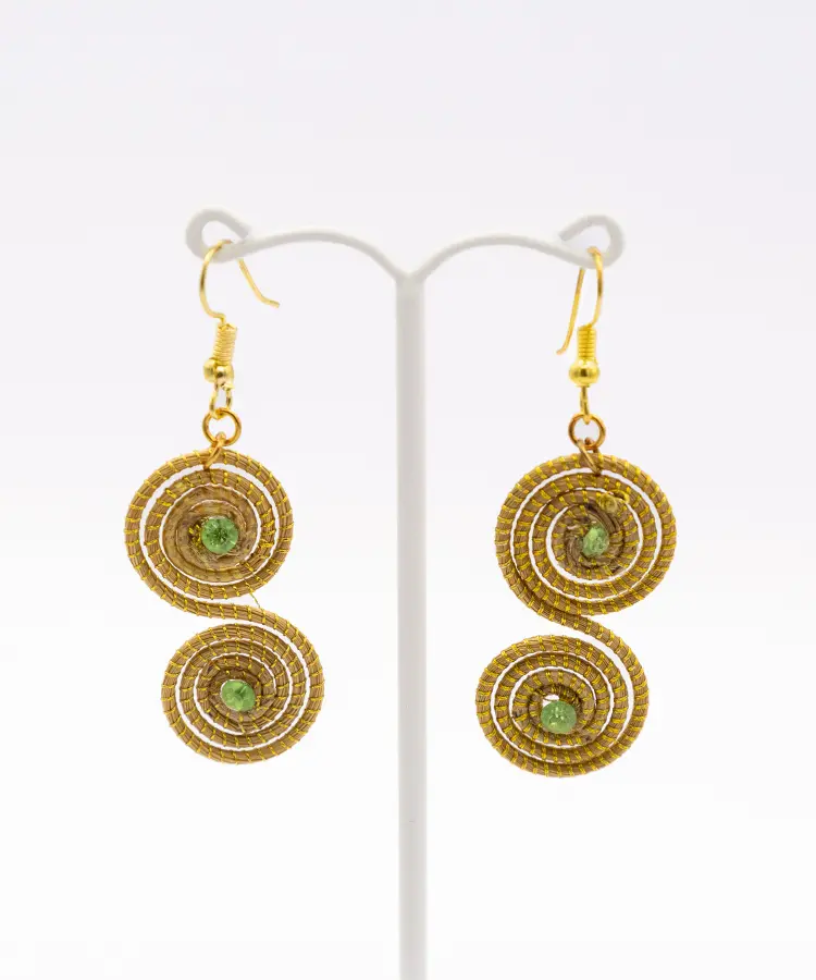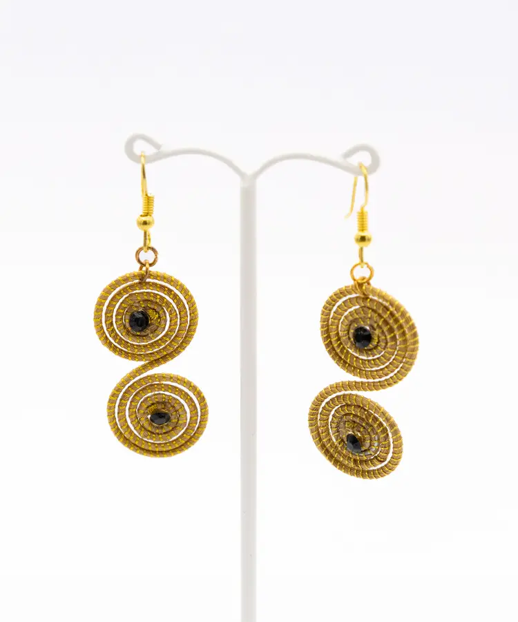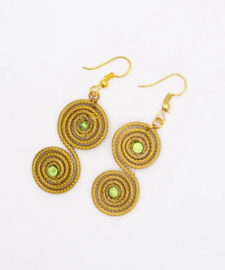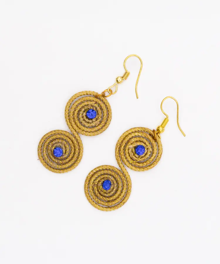 Pendientes en Capim Dourado (oro vegetal) con forma de caracola. Ligeros, luminosos y con una elegancia muy natural. El cristal Swarovski añade destellos sutiles, manteniendo una estética serena.